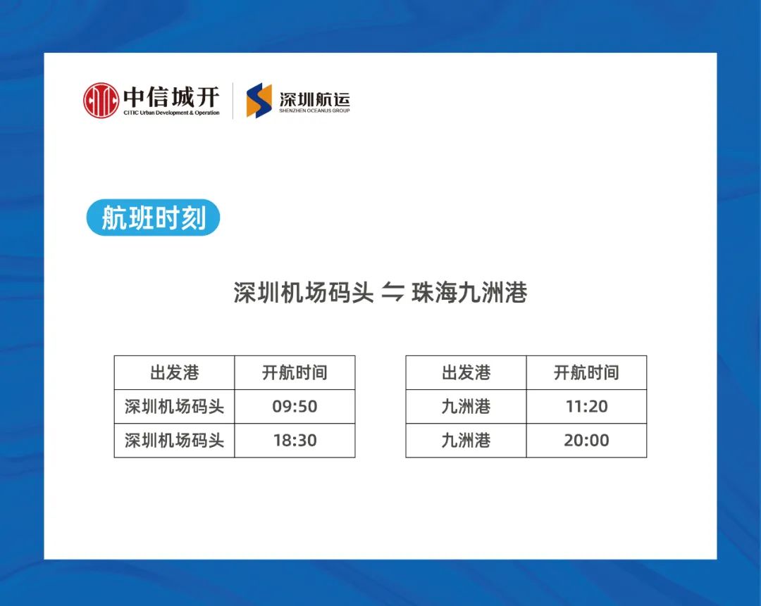 为有序恢复并促进深珠两地人员往来,经相关安排,11月5日起,深圳航运集团将恢复深圳机场码头至珠海九洲港往返航线运营。