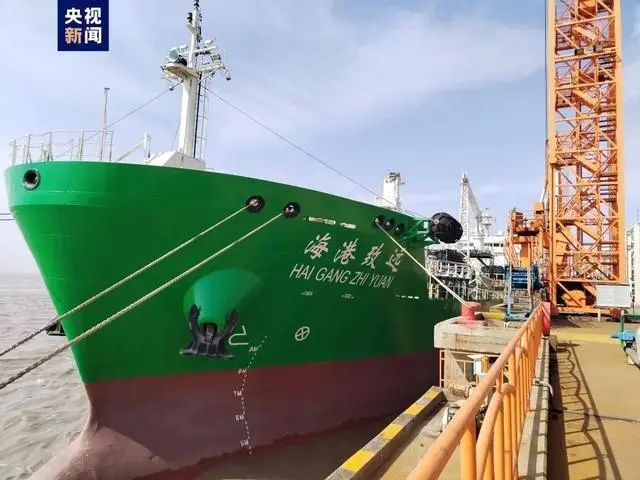 3月13日10时,在洋山港海事局远程监控和现场执法人员的守护下,国内首艘投运的甲醇燃料加注船“海港致远”轮在洋山港申港石油码头顺利完成甲醇燃料补给测试。此次“海港致远”轮顺利靠泊完成燃料补给测试,标志着洋山港已具备甲醇燃料补给能力,在港内即可实现甲醇燃料补液,进一步降低了燃料加注公司的运行成本。