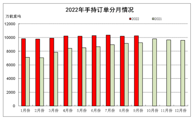 1-9月,全国造船完工2780万载重吨,同比下降8.4%。承接新船订单3245万载重吨,同比下降40.1%。9月底,手持船舶订单10256万载重吨,同比增长10.9%。